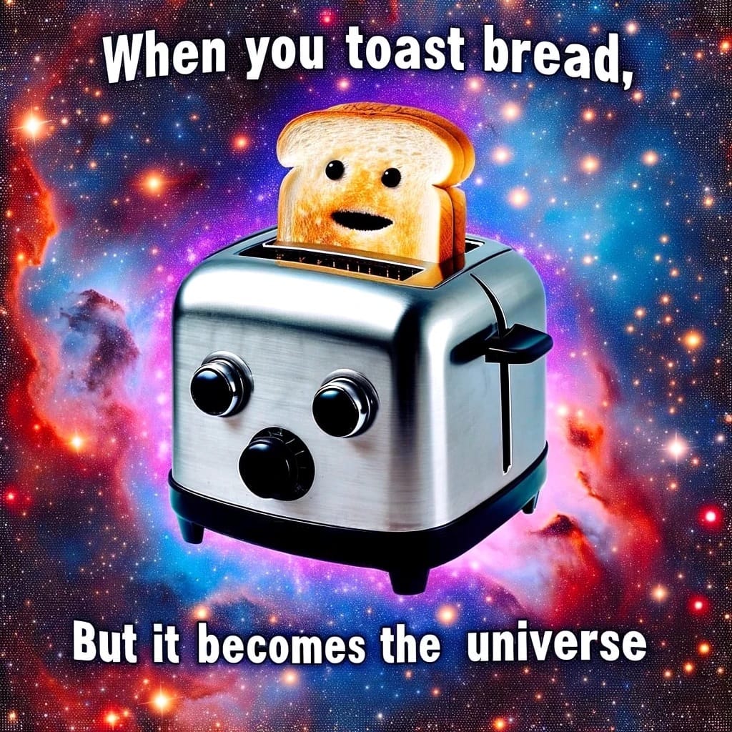 Prompt was something along the lines of "make a surreal meme about toast" - DALL-E 3 in December 2023