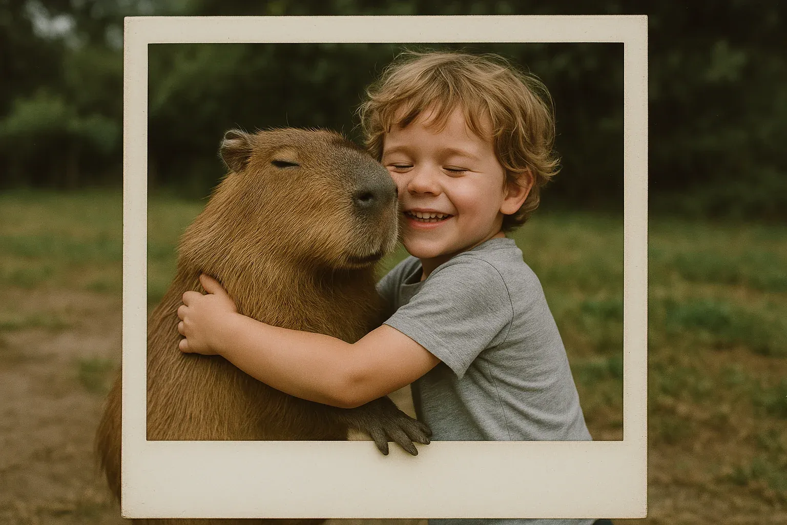 Visual Fidelity: "photo realistic Polaroid of capybara hugging a smiling child" - ChatGPT 4o in March 2025
